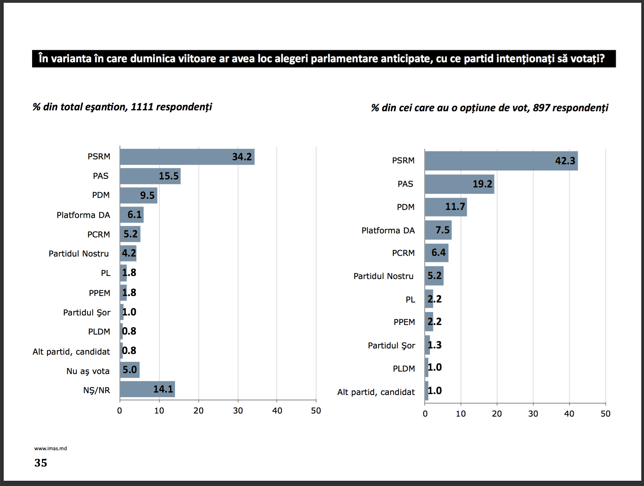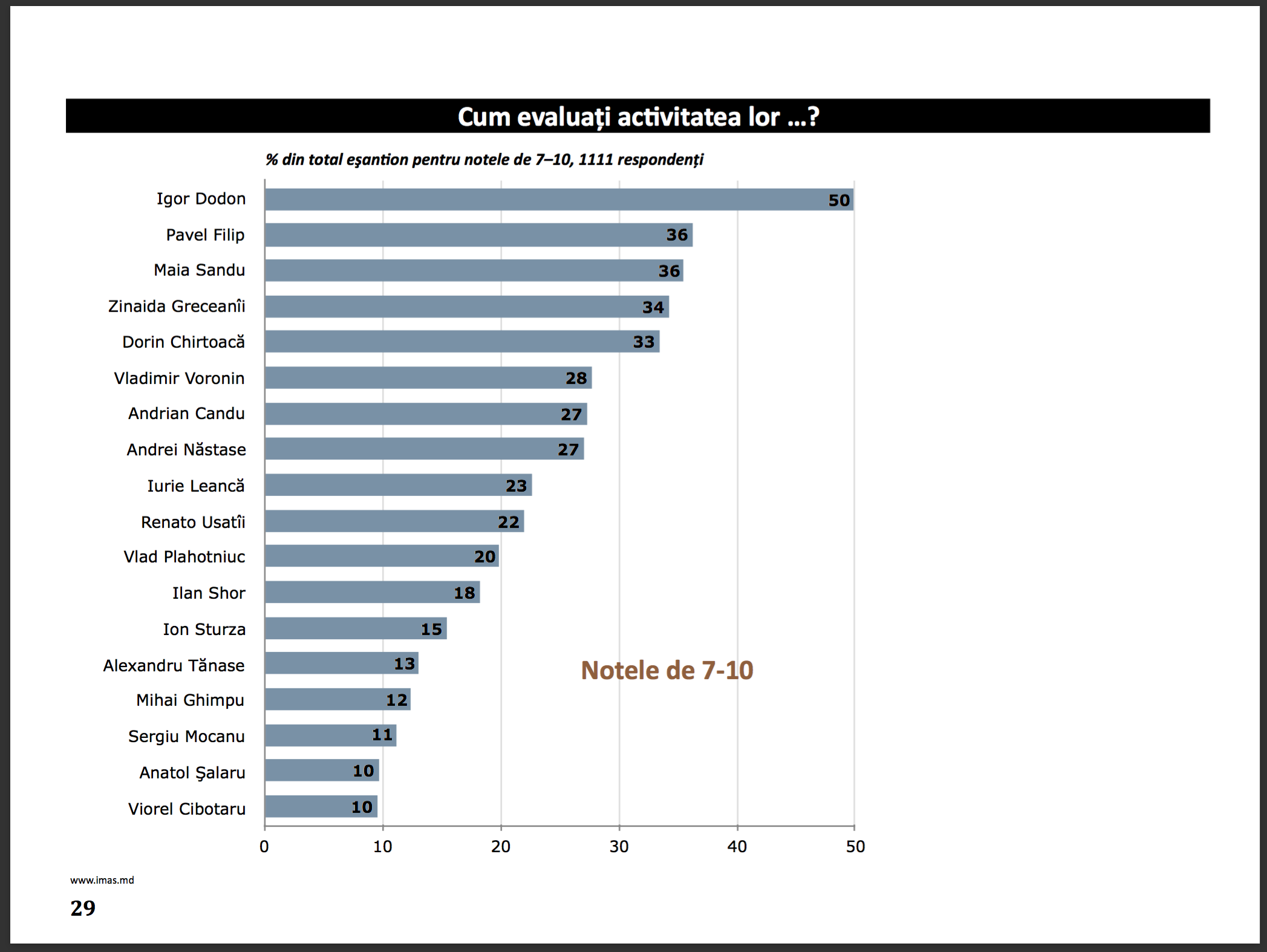 Eșantionul sondajului - 1.111 respondenți, 18 ani și peste. Eroare maximă: ±3.0%. Puteți accesa raportul sondajului în secțiunea Arhiva în limbile Română, Engleză și Rusă. Comanditarul sondajului este Partidul Democrat din Moldova.