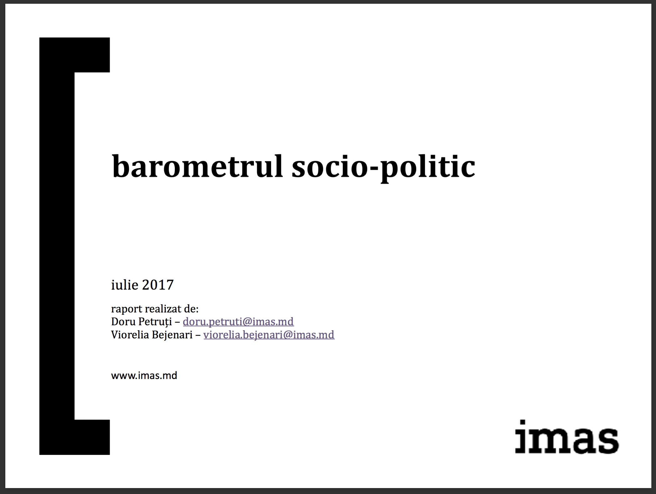 18 iulie 2017[imas] a imas a realizat un sondaj de diagnoză socio-politică în perioadă 22 iunie – 09 iulie 2017